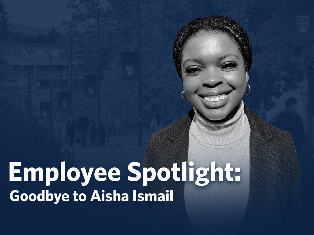 At UBC IT, we have the unique opportunity of being able to employ Co-op and Work Learn students who support our daily work activities while learning on-the-job skills. These students become integral to our daily operations by contributing fresh perspectives and injecting positive energy into our teams. When their short stay with us quickly approaches, it's important to celebrate the work they’ve accomplished, reminisce over the funny jokes told around the office, and wish them well on their new adventures. This week we are saying goodbye to Aisha Ismail, our UBC IT Communications and Marketing Work Learn student.