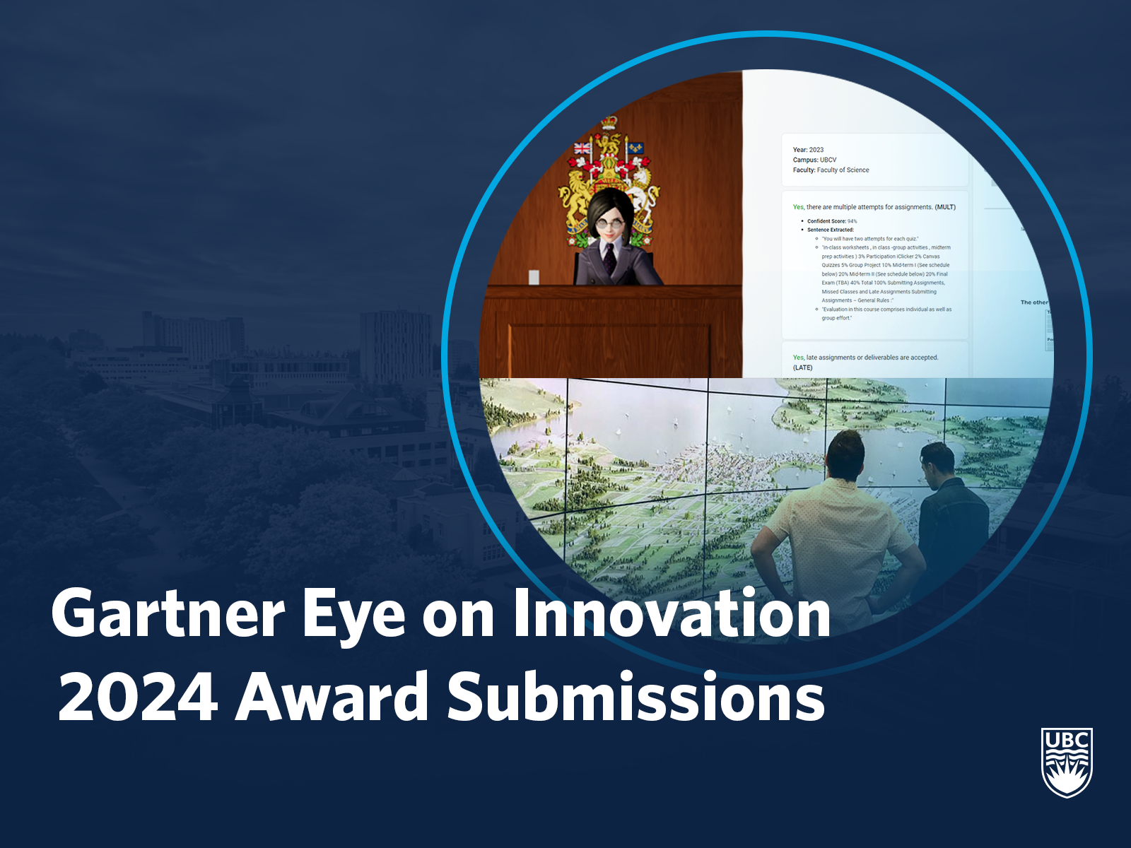 Gartner, one of the leading technical research and consulting firms worldwide, has recently held its submission intake for their annual Eye on Innovation awards. These awards recognize innovative uses of technology that drive best in-class initiatives. This year, UBC has submitted 4 projects for consideration in the Education category.