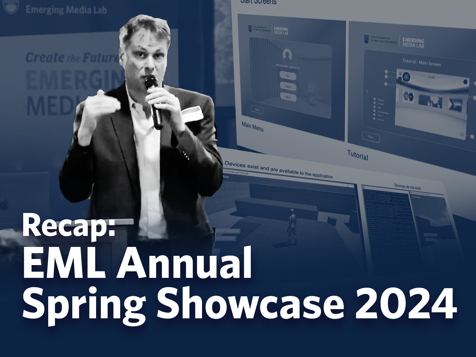 On April 10, students at the Emerging Media Lab (EML) showcased their groundbreaking work on Artificial Intelligence (AI) and Virtual Reality (VR) during the Annual Spring Showcase 2024. This event displayed the strength of student projects at UBC, and was also a celebration of collaboration, creativity, and the pursuit of knowledge. The Annual Spring Showcase 2024 gave us a glimpse of how students, faculty and staff have been working alongside industry and community partners to advance learning through the development of innovative tools and techniques utilizing emerging AI and VR technologies.