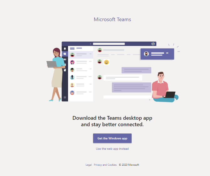 The Teams web app can also be used by visiting https://teams.microsoft.com