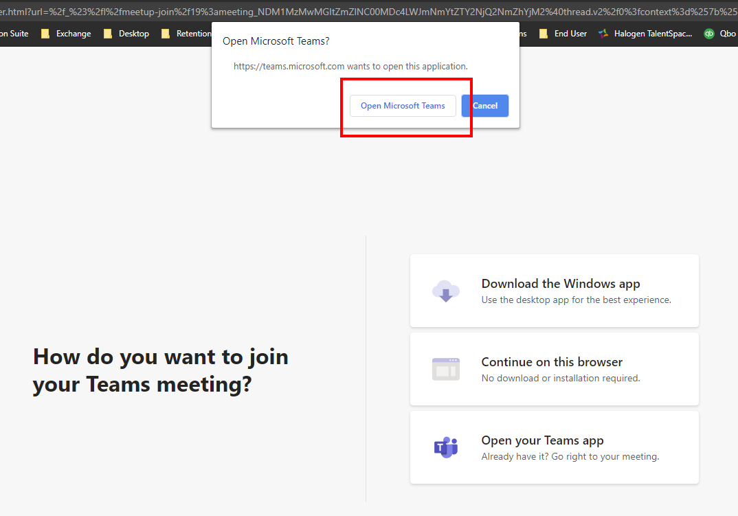Users impacted: All Windows PC Teams users Estimated resolution timeline: No ETA More information can be found here. Workaround: Click Cancel to ignore the message. The call will work after the warning is dismissed. Additional information can be found here.