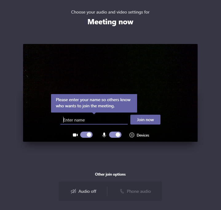 Then you should see the following window for you enter your name in the Enter name text box and click on Join now when you are ready to enter the virtual meeting.