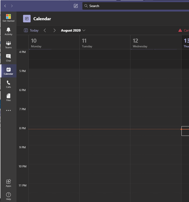 - In Teams, you will see the calendar icon on the left panel of the client: