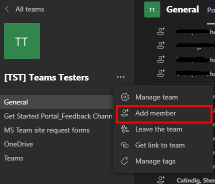 - Click on the '…' icon beside the team name and click Add member: