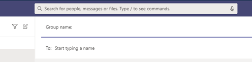 Start one the same way you start a one-on-one chat: select New chat at the top of your chat list. Select the down arrow to the far right of the To field and type a name for the chat in the Group name field. Then, type the names of the people you'd like to add in the To field.