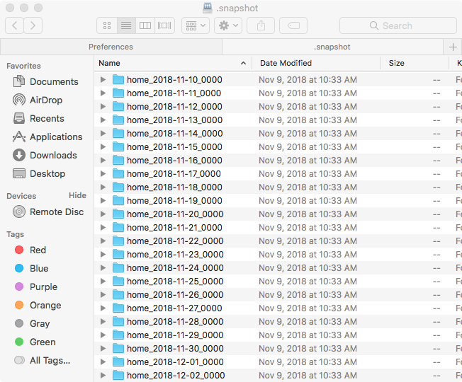 - A mounted drive will appear showing snapshots.