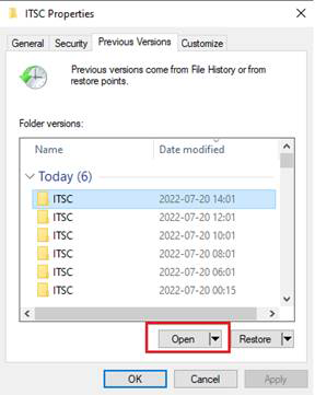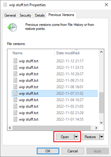 - To examine a particular version, select the version and click Open; the item will be opened as read-only.